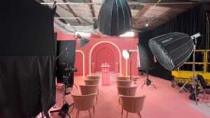 The studio boasts a 2,000 sq.ft space with a ceiling height of 5.8 metres, featuring a large infinity cove, blackout studio, green screen studio, and private green room. Additionally, it provides 63amp 3-phase power and drive-in access, facilitating the construction and utilisation of diverse sets.